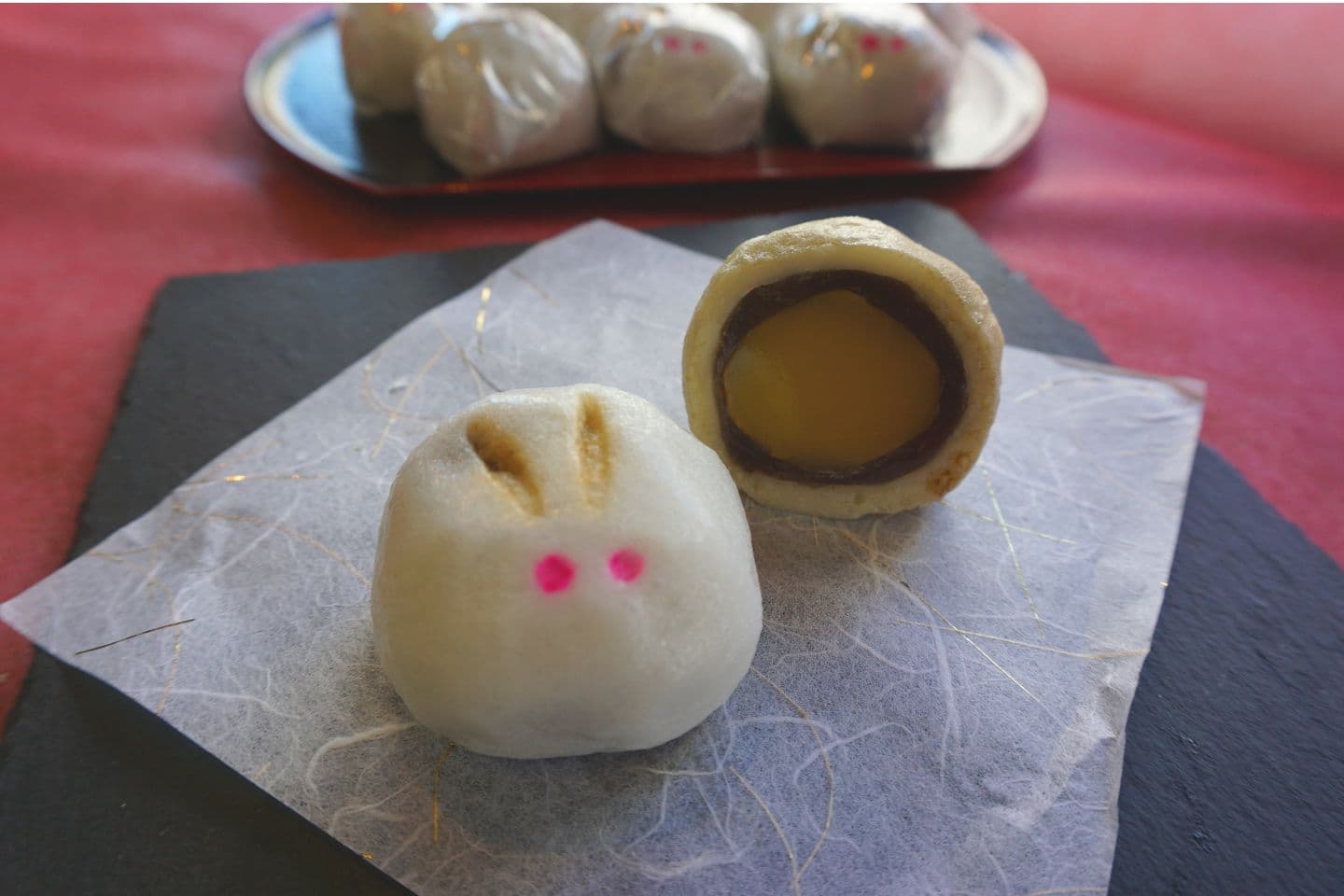 見た目もかわいく子どもたちに大人気のお菓子。作り方に妥協はなく、薯蕷(大和芋)をすり交ぜたきめ細やかな生地でこし餡を包み込み、しっとりた感触。